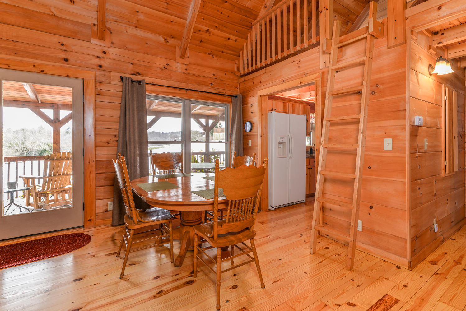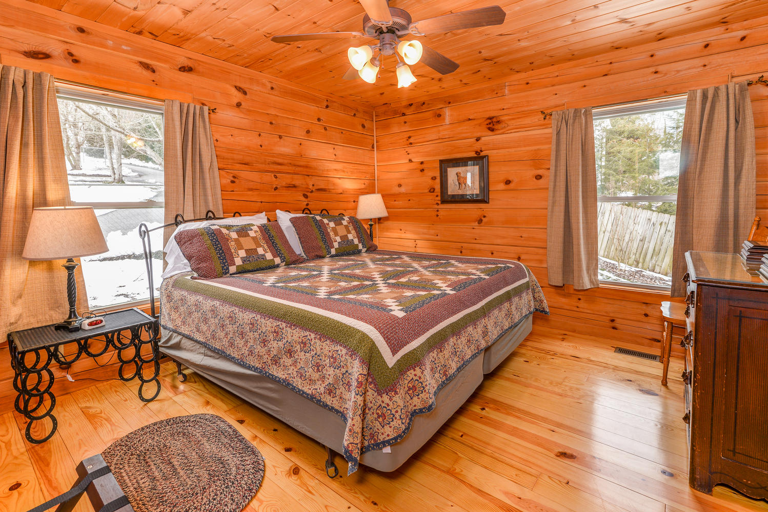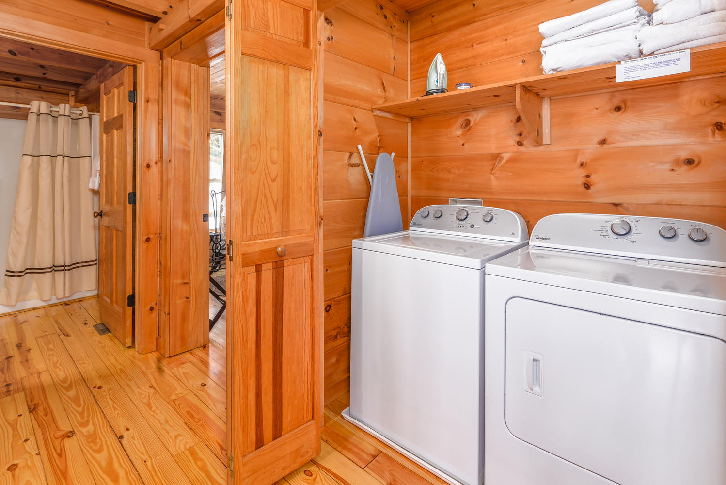 Located at the end of Barkwells Lane, this 2 bedroom, 2 full bath log cabin feels private, spacious, and homey. The pine floors and walls reaching up to the cathedral ceiling in the living room take you away from the everyday. Rock, swing, or play games no matter what the weather is on the 40’ covered porch. The fenced backyard runs the length of the cabin, so your four-legged friends will have plenty of room to stretch their legs. The spacious master has a wheelchair accessible en suite bath with a roll-in shower, grab bars, and a roll-under sink to make life easy for the mobility challenged. From the parking at your door, it’s straight into the cabin with no steps for ease in and out.