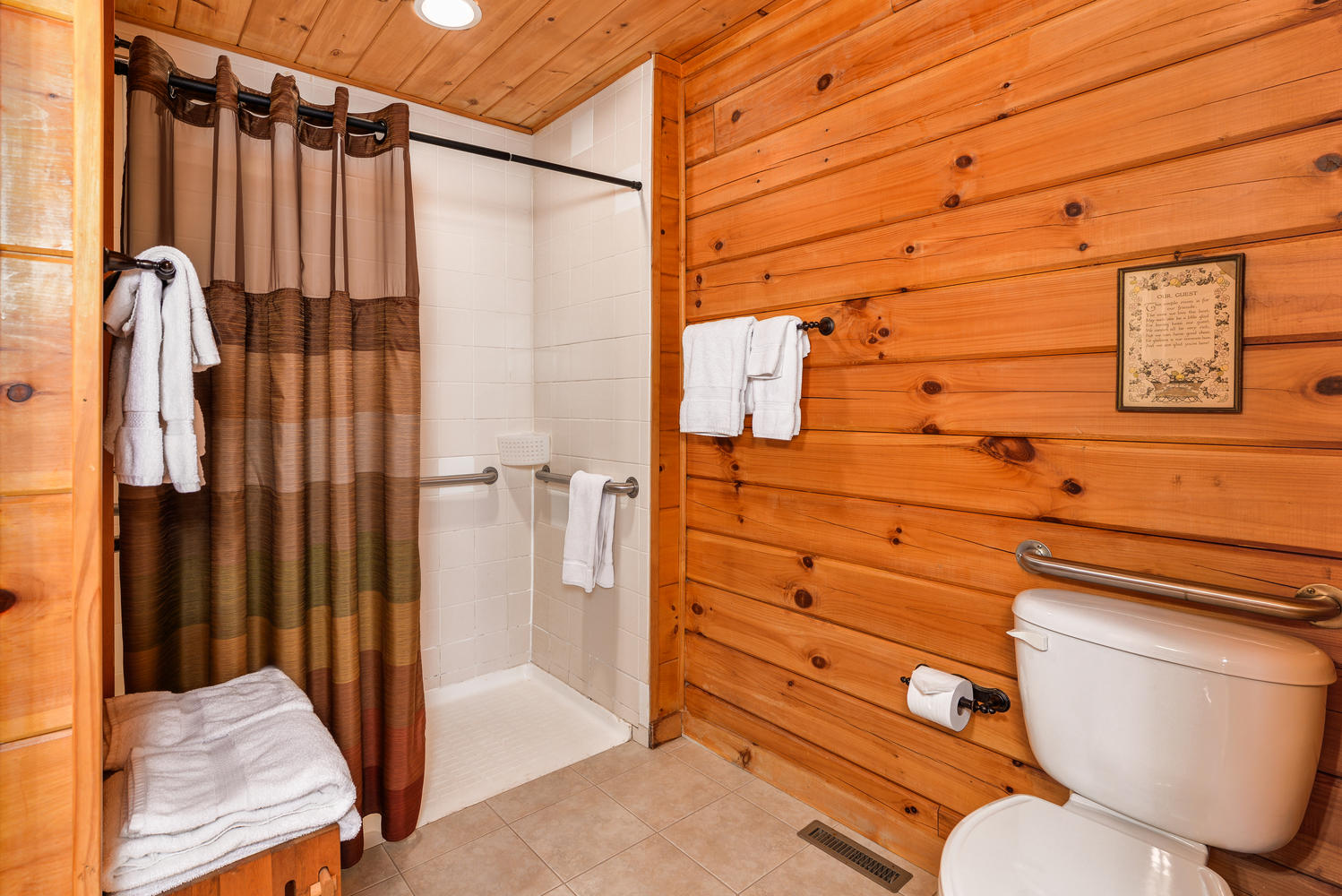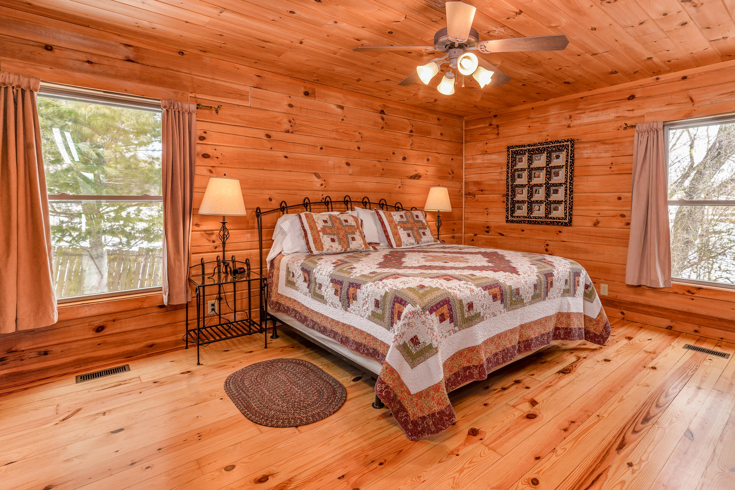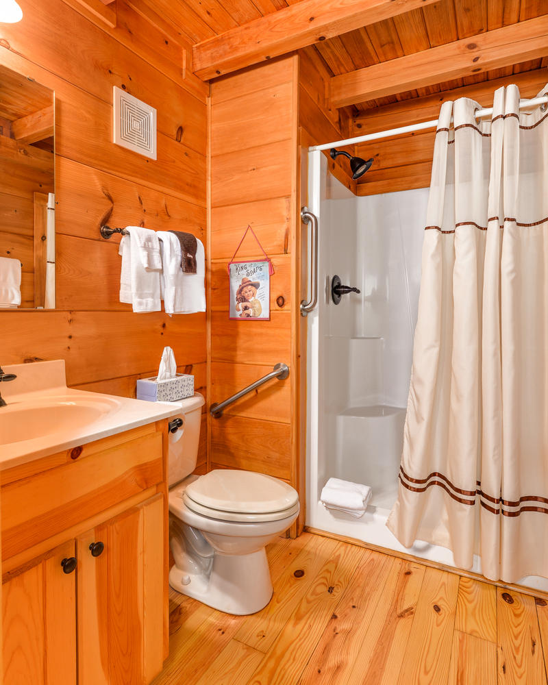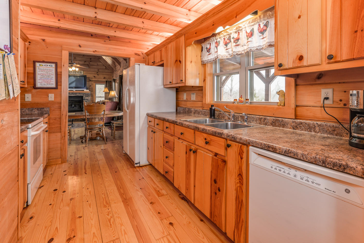 Located at the end of Barkwells Lane, this 2 bedroom, 2 full bath log cabin feels private, spacious, and homey. The pine floors and walls reaching up to the cathedral ceiling in the living room take you away from the everyday. Rock, swing, or play games no matter what the weather is on the 40’ covered porch. The fenced backyard runs the length of the cabin, so your four-legged friends will have plenty of room to stretch their legs. The spacious master has a wheelchair accessible en suite bath with a roll-in shower, grab bars, and a roll-under sink to make life easy for the mobility challenged. From the parking at your door, it’s straight into the cabin with no steps for ease in and out.